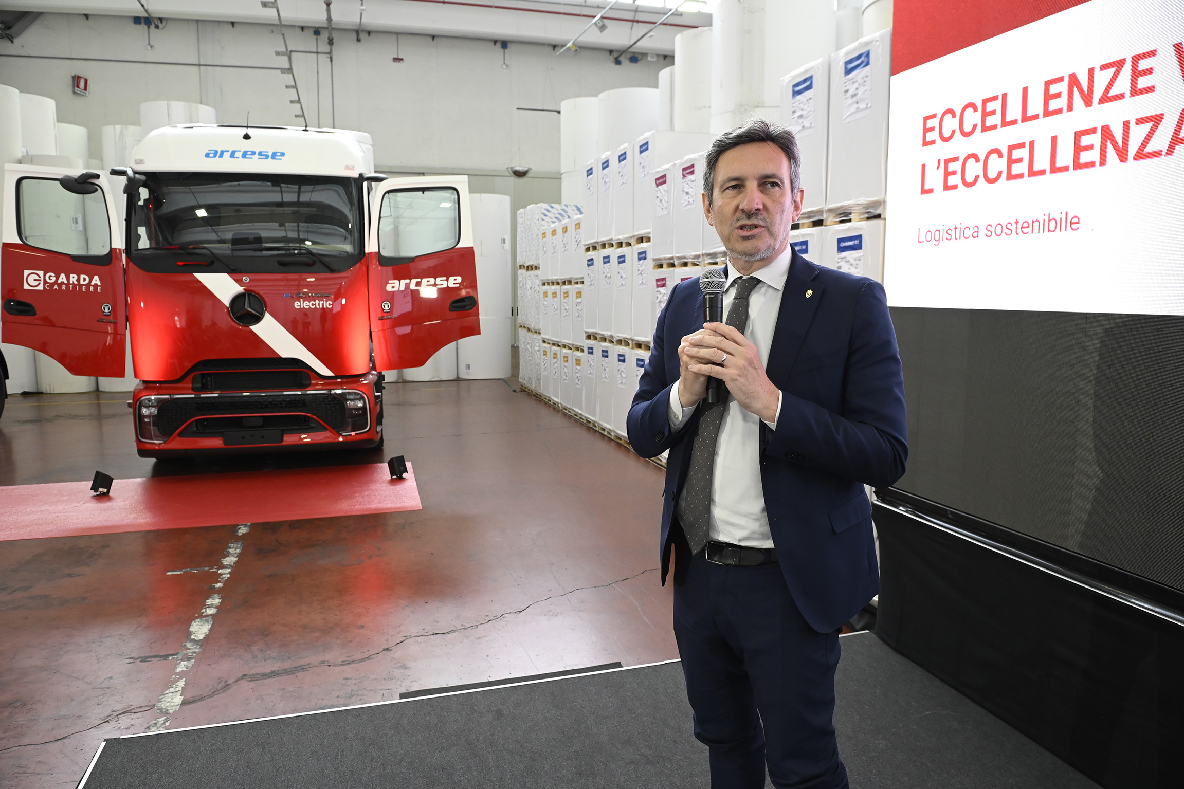 Accanto ai vertici della Provincia, vi erano sindaci e amministratori del territorio, rappresentanti delle realtà industriali dell’Alto Garda, nonché i vertici di Arcese, ovvero il ceo Matteo Arcese con il papà Eleuterio, Corrado Lignana responsabile della Business Unit di Cartiere del Garda con il direttore dello stabilimento rivano Antonio di Blas, nonché Maurizio Pompei presidente e ceo di Daimler Truck Italia – Mercedes-Benz.