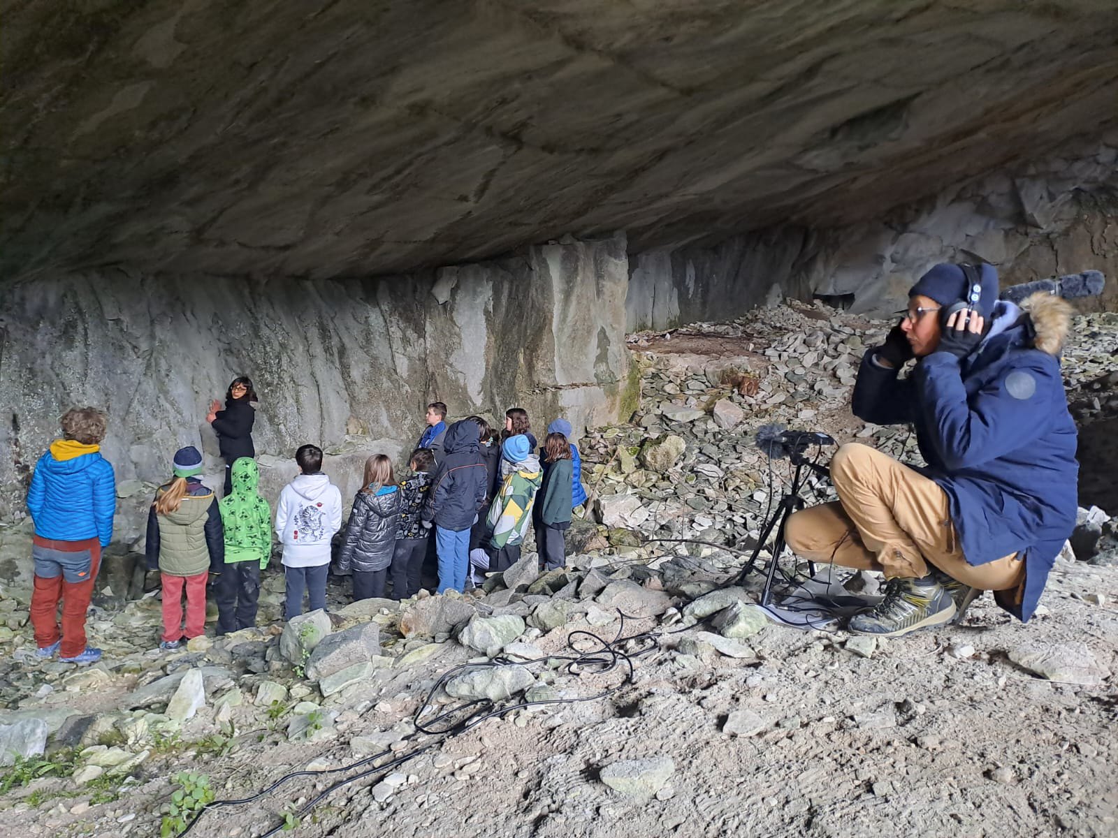 Le uscite sul territorio hanno portato la classe nel Bosco Caproni e alle cave di oolite dove il paesaggio naturale si è trasformato in materia sonora. Guidati anche dalla musicista Claudia Ferretti, i ragazzi hanno dato voce a quello che definiscono lo “spirito del luogo” trasformando suoni, movimenti e suggestioni in composizioni collettive.