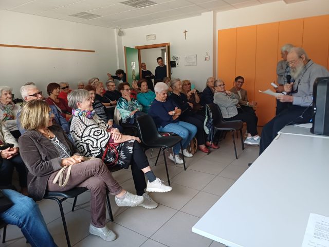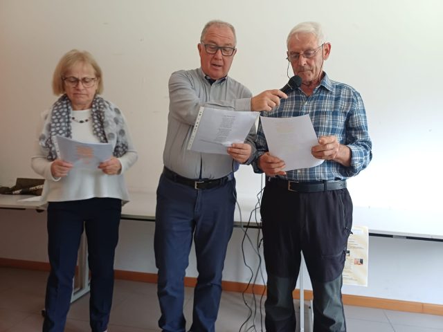 Affollato incontro nei giorni scorsi all’Oratorio “San Gabriele“ di Arco dove la “Lega Vita Serena” del presidente Clementino Gardella ha ospitato alcuni componenti dell’associazione “Giacomo Floriani” che hanno drammatizzato alcune poesie dello scrittore dialettale rivano. Da “È arivà la cicogna!” a “La mé baita”, da “Montagne trentine” a “La maridente?” e a tante altre, le letture hanno permesso agli ospiti, fra i quali anche una nutrita rappresentanza della “Residenza Molino” di Dro, di gustare i versi di Giacomo Floriani, molti dei quali sono di grande attualità nonostante siano passati molti anni dalla sua morte (1968).