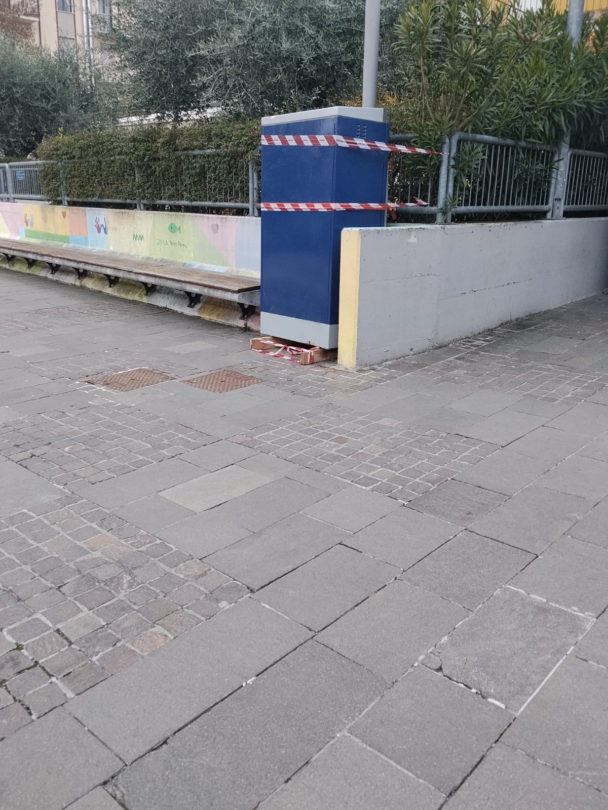 Un altro punto riguarda la scala che conduce al condominio Piemonte, dove – sempre secondo quanto riportato nell’interpellanza – sarebbe stata rimossa la cassa automatica, lasciando “i cavi completamente esposti”.