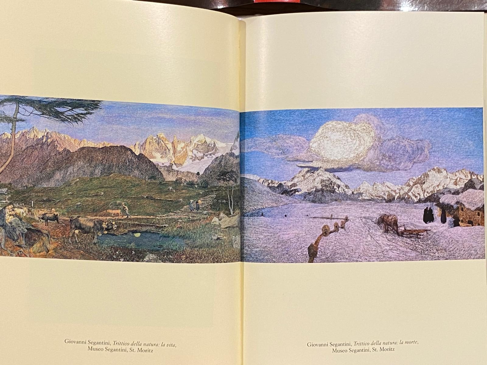 Nel capitolo, Sgarbi accompagna il lettore dentro la visione segantiniana della montagna, presentata come luogo morale e simbolico prima ancora che naturale. A corredo del testo trovano spazio immagini di opere fondamentali come Pomeriggio sulle Alpi, Ritorno dal bosco, Le due madri e due pannelli del Trittico della natura (La vita e La morte). È qui che la montagna diventa protagonista assoluta: non paesaggio da contemplare, ma spazio in cui si intrecciano fatica, spiritualità, maternità, destino umano. In questo racconto, l’origine arcense di Segantini assume un valore che va oltre il dato biografico, diventando parte integrante di una visione artistica costruita guardando costantemente “verso l’alto”.